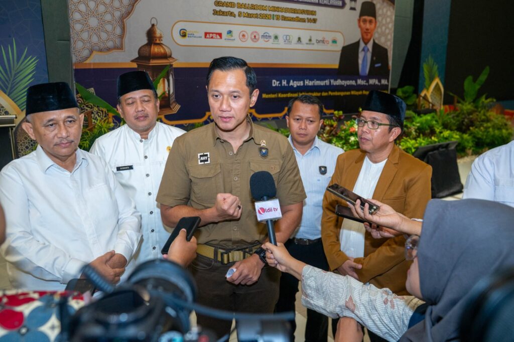 Jakarta (6/3). Menteri Koordinator Bidang Infrastruktur dan Pembangunan Kewilayahan Agus Harimurti Yudhoyono (AHY) menegaskan, pembangunan sumber daya manusia melalui pendidikan menjadi kunci utama dalam menentukan masa depan Indonesia. Hal itu ia sampaikan saat menjadi pembicara dalam acara “Kuliah Umum, Santunan Anak Yatim Pembagian Sembako dan Buka Bersama”, di Pondok Pesantren (Ponpes) Minhajurrosyidin, Jakarta, pada Rabu (5/3).